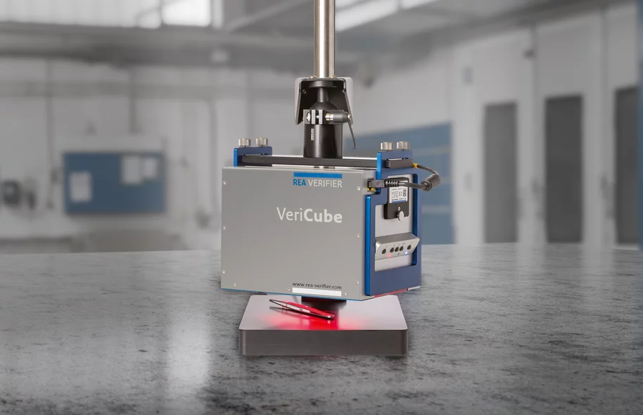 Objects from the medical technology or automotive industries often have complex 3D geometries that make it impossible to place the code to be checked directly on the code verification system. However, this is a decisive factor in achieving the goal of reproducible measurement results. A height-adjustable stand can help here. Installed in the stand, the code verification system can be precisely aligned with the product and the code can be read.