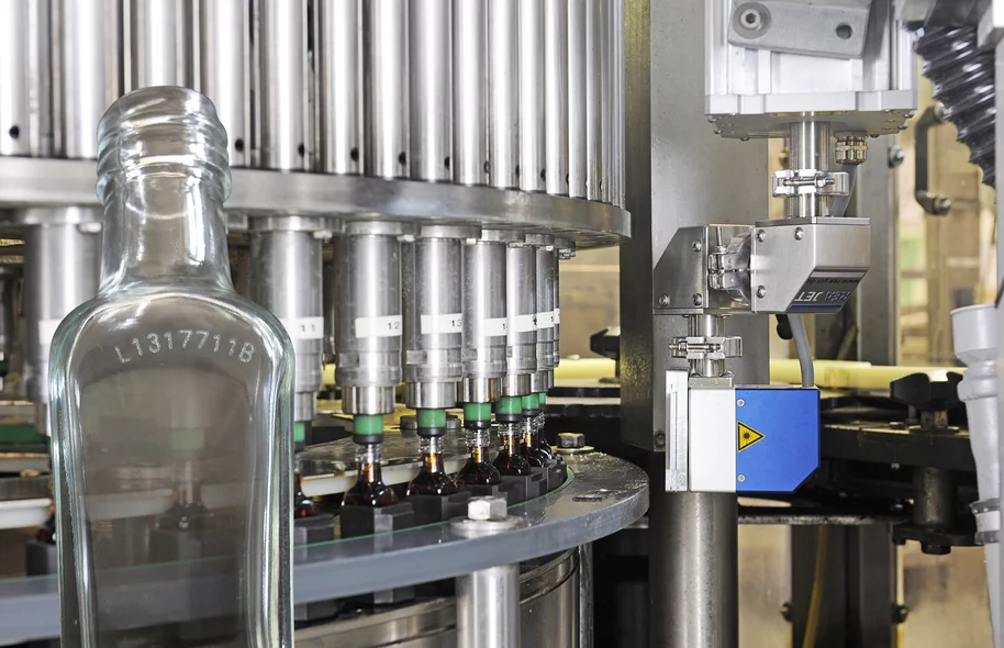 Glass surfaces are a challenge for marking technology, as the contrast required for readability is lacking, especially on transparent glass. However, various systems have proven very successful when precisely matched to the type of glass, marking size and durability requirements: direct marking using CO2 Laser or inkjet printers and especially inks. Depending on the production environment, the coding and marking systems also have to be able to cope with very high production speeds, condensation on the glass surfaces, high temperatures or dust pollution in the air.
