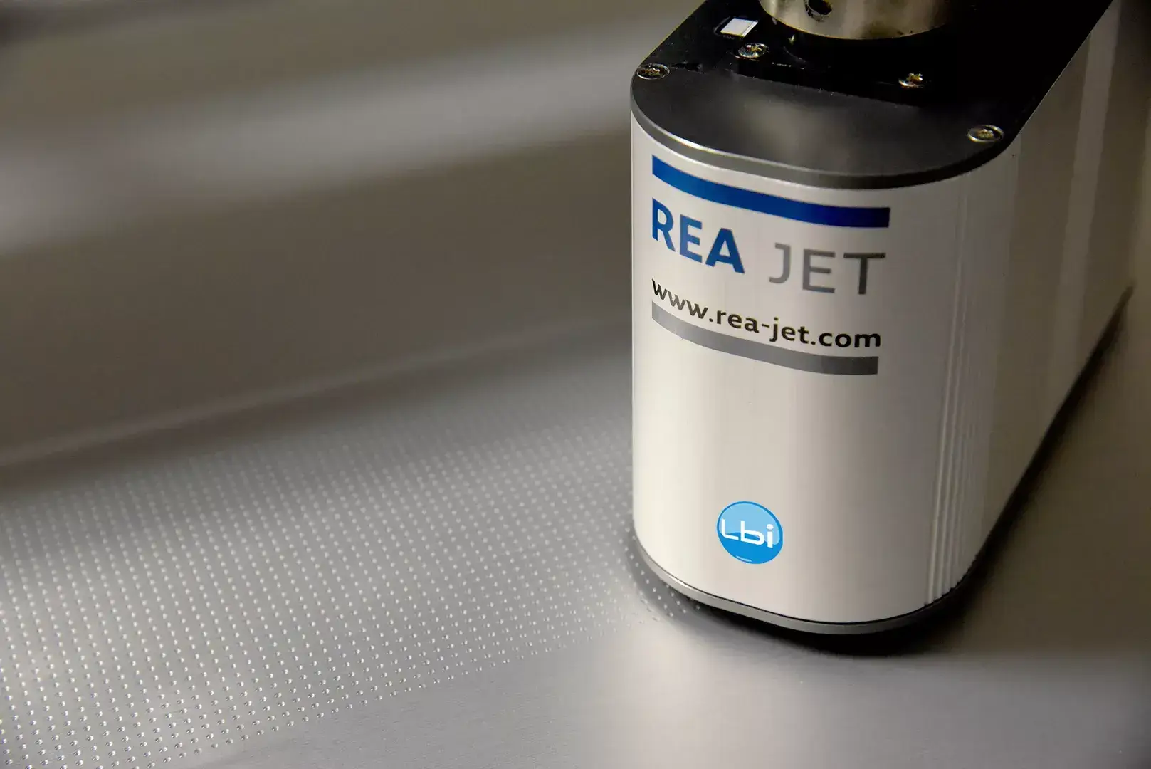 The REA JET UP and REA JET DOD also work with digital precision for the precise application of oil-free lubricants in the production of welded pipes. At speeds of up to 1,800 meters/minute, the REA JET UP prints high-resolution images of lubricant wetting. Application widths of up to 2,300 millimeters are possible with the REA JET DOD. The mist-free and aerosol-free technologies apply lubricants with high precision and individually – with minimal use of material and without any dripping.